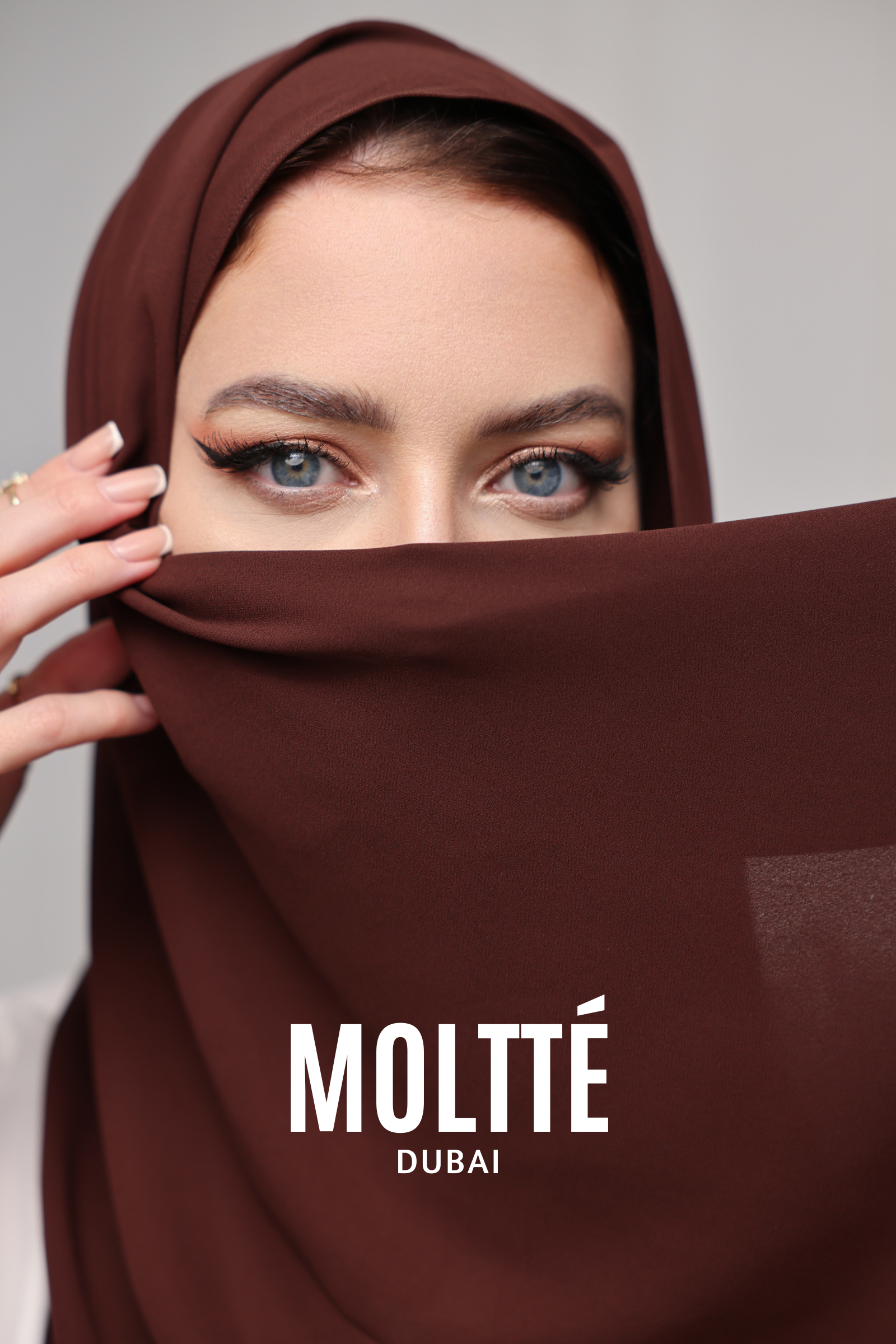 Chiffon Hijab With Stitched full Neck Cotton Undercap | Instant Hijab | Umber Brown